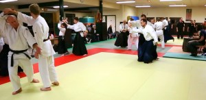 Le second temps était celui de la présentation, permettant d’observer et de découvrir les autres disciplines : toujours sur fond musical, chaque groupe a ainsi présenté son travail devant les autres. Le groupe de danse a brillé par son énergie et le groupe de Tai Chi par son unité et sa concentration… nous, aïkidokas, devions avoir l’air légèrement plus désordonnés, bien qu’il soit toujours difficile de se juger soi-même !
