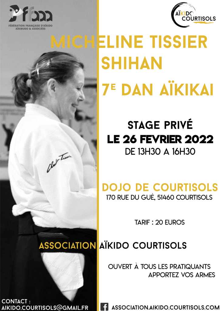 En effet, après son passage au club en novembre dernier, Micheline Vaillant-Tissier Shihan nous fait le plaisir de revenir au dojo le 26 février prochain dans le cadre d’un stage privé.