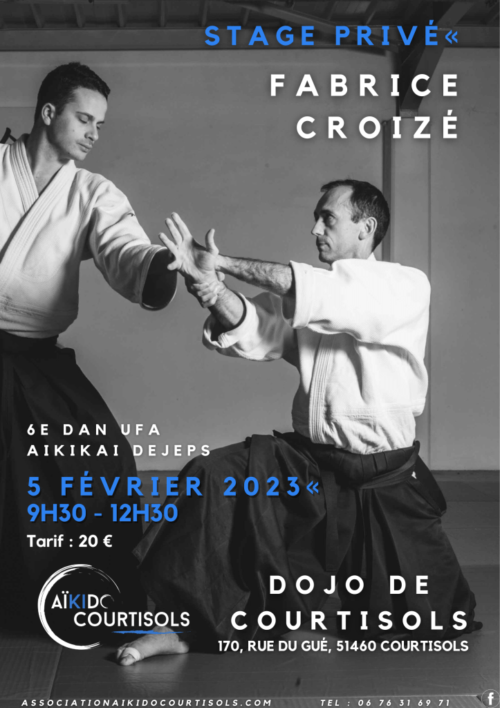Car c’est avec un immense plaisir que nous recevrons au dojo de Courtisols Fabrice Croizé Senseï, 6ème Dan UFA et Aïkikai DEJEPS, le dimanche 5 février 2023.